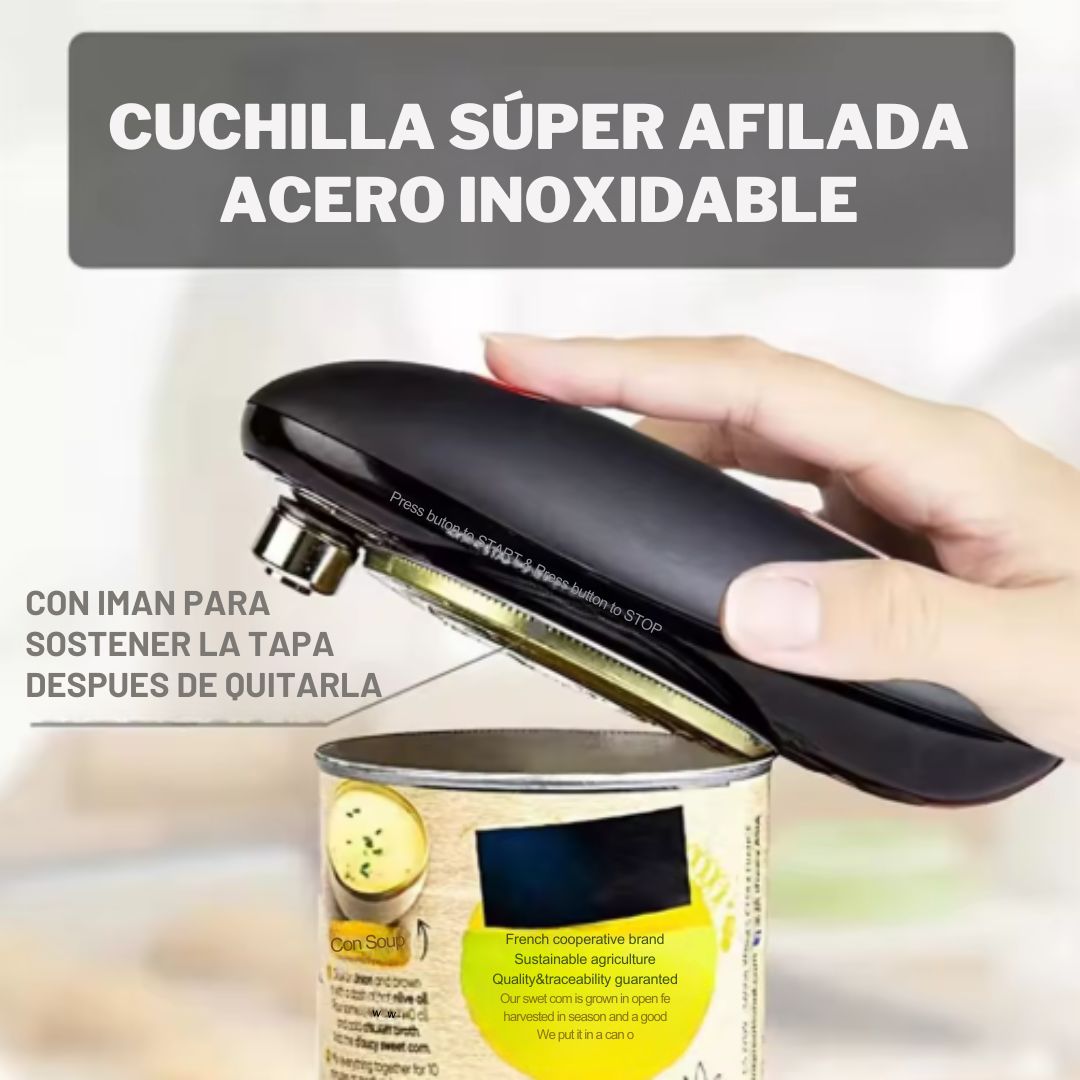 Con nuestro abre latas eléctrico abrir latas ya no será difícil, solo presiona un botón y listo