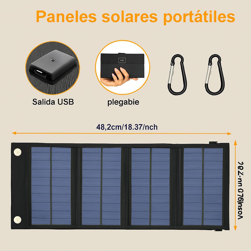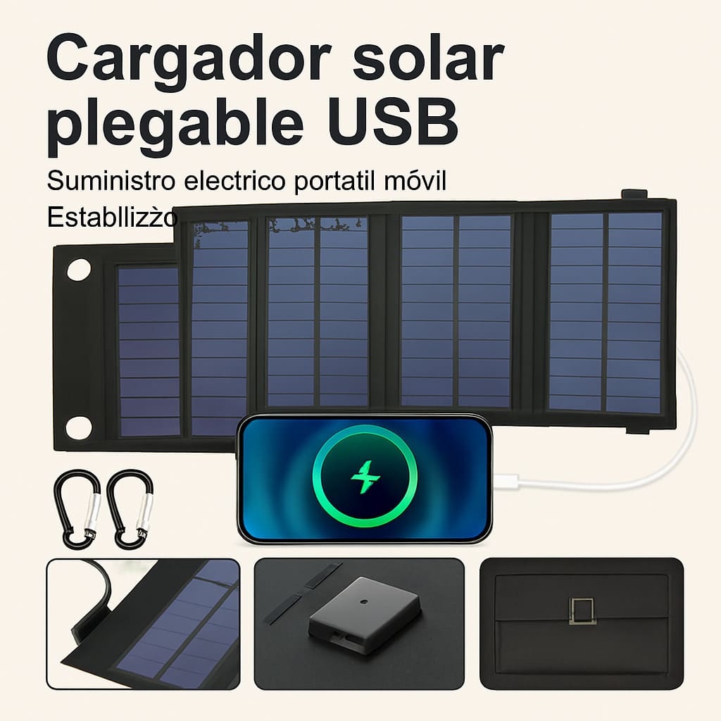 🌍 Energía limpia, gratuita y renovable.📱 Carga segura para todos tus dispositivos USB 5V.