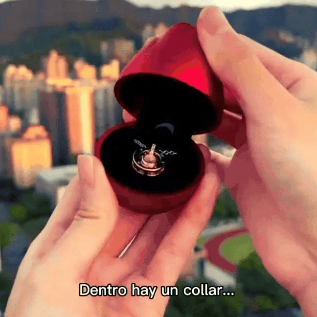 Acompañado por una lujosa caja en forma de rosa, este collar no solo es un regalo, sino una experiencia cargada de significado