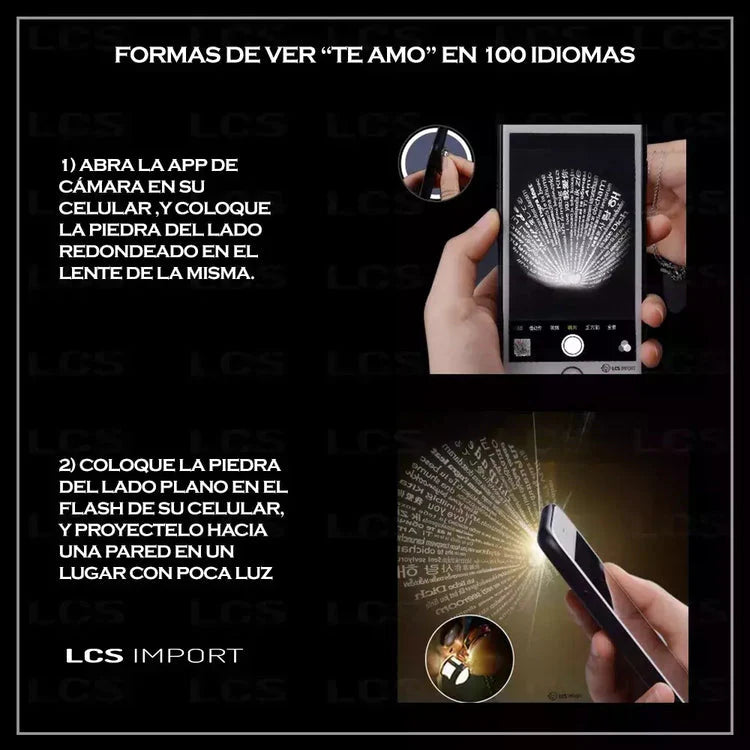 - Mensaje especial: Proyecta "Te amo" en 100 idiomas, un detalle romántico único.