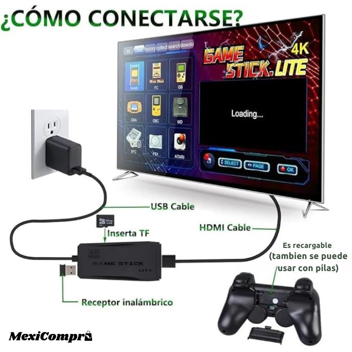 Adaptador HDMI y cables para fácil conexión