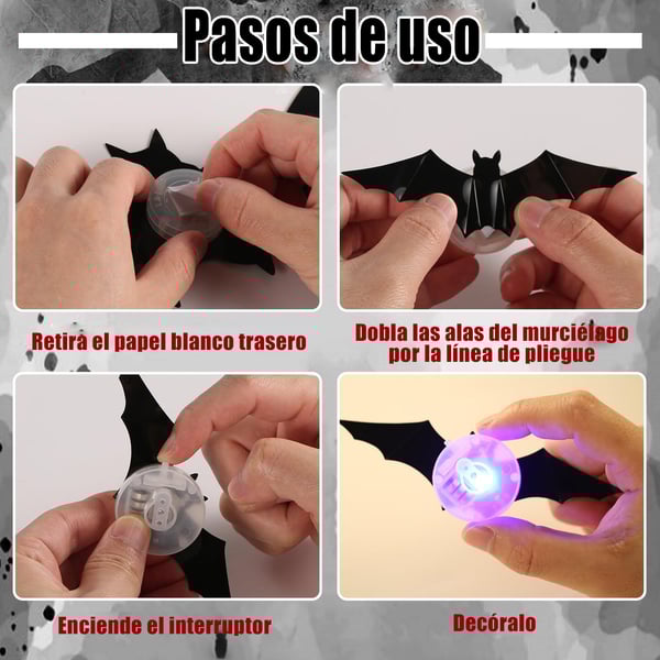 la clásica forma de murciélago combinada con el efecto de iluminación LED único crea instantáneamente una atmósfera de Halloween rica y misteriosa