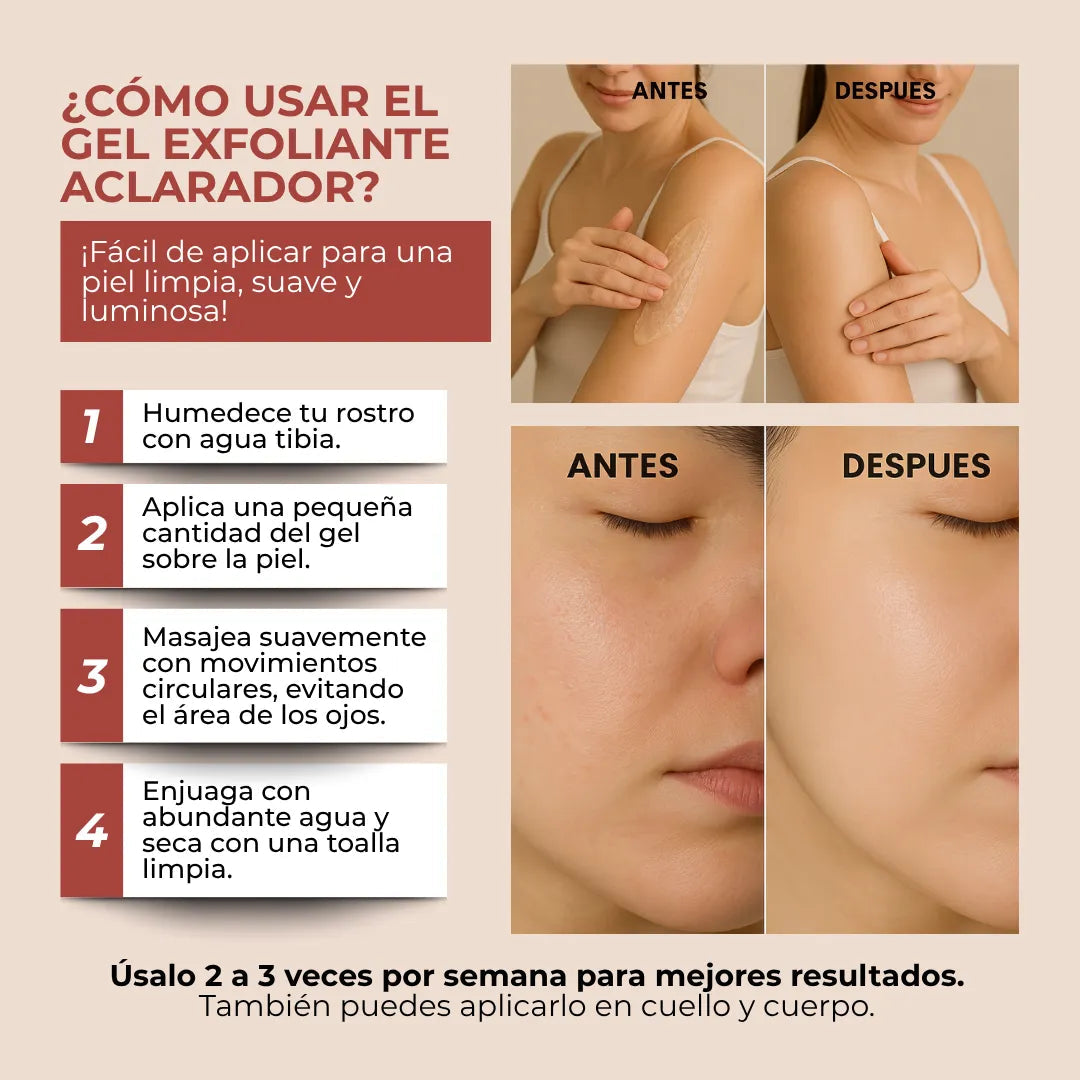 Descubre cómo nuestro GEL ACLARADOR transforma tu piel, eliminando impurezas y revelando un tono más claro, uniforme y con un brillo natural.