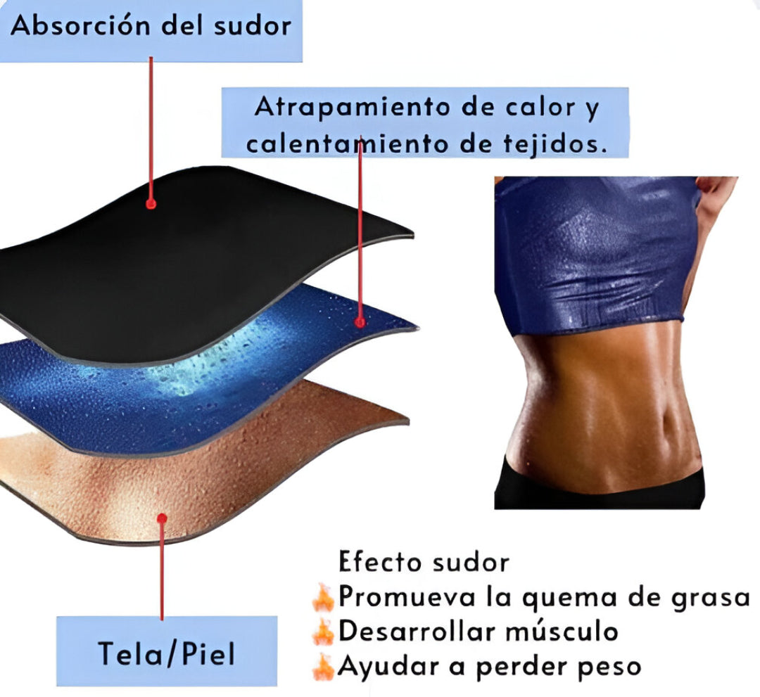 - Tecnología Efecto Sauna: Quema grasa mientras estilizas tu cuerpo, acelerando la sudoración y ayudando a eliminar toxinas.