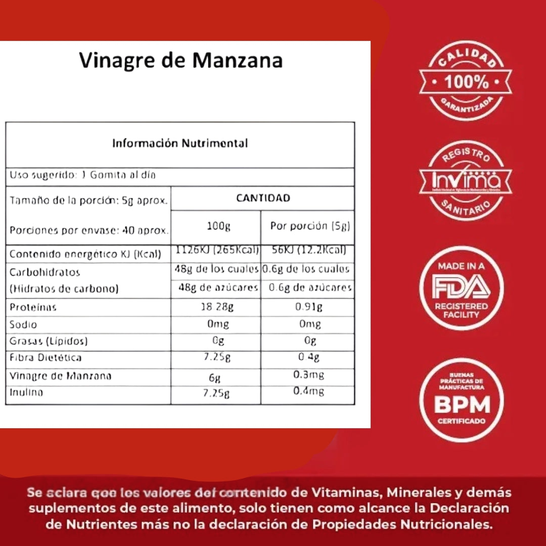 El sabor del vinagre puede ser desagradable para muchas personas. Por eso, hemos creado estas gomitas: una forma deliciosa de obtener los beneficios del vinagre de sidra de manzana