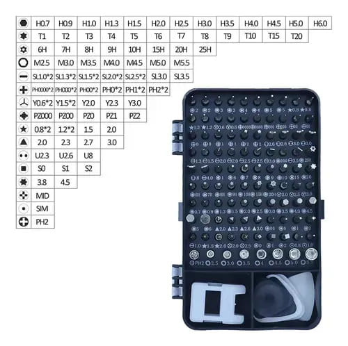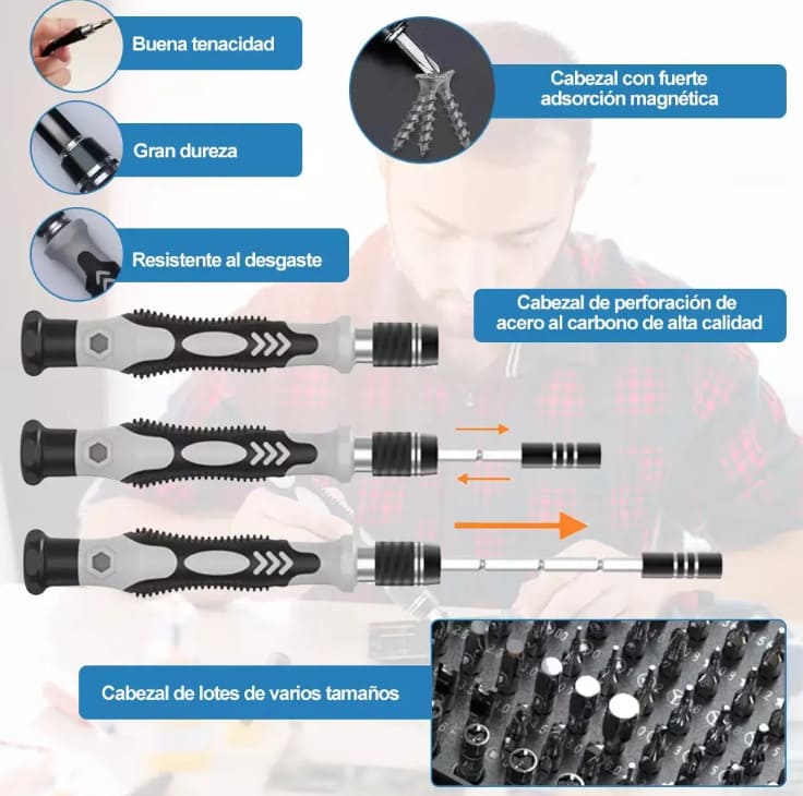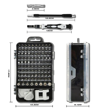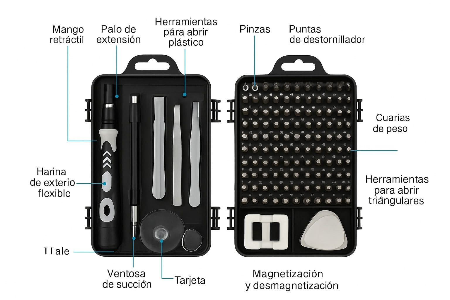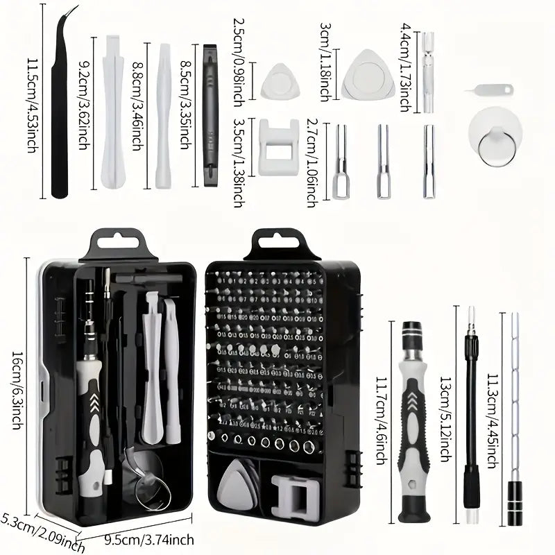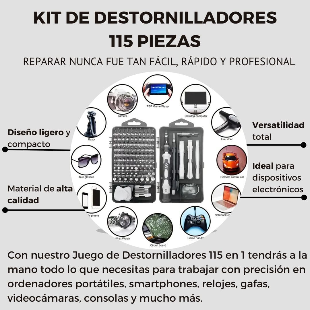 Recibirá 1 kit de 115 destornilladores con todos sus herramientas