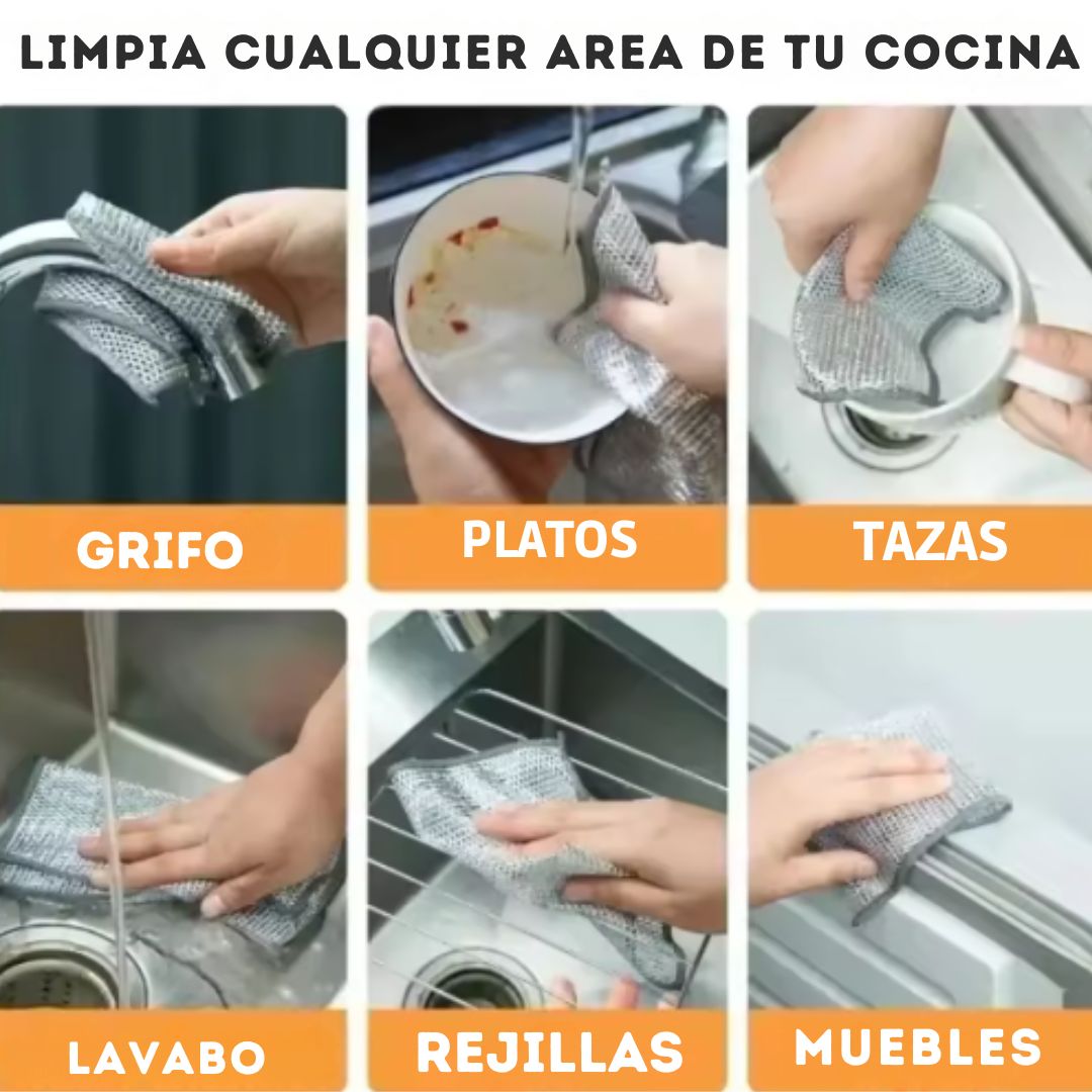 PAÑO DE LIMPIEZA MÁGICO DE ALAMBRE DE ACERO Y METAL DOBLE CARA PARA COCINA🔥