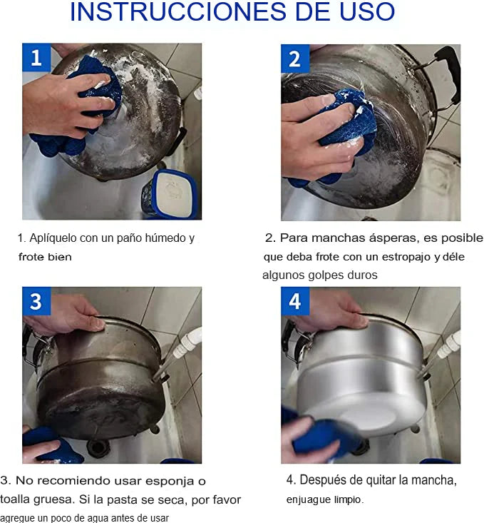 Nuestra pasta es la solución para restaurar el e brillo y la funcionalidad de tus ollas, sartenes y utensilios sin necesidad de comprar nuevas