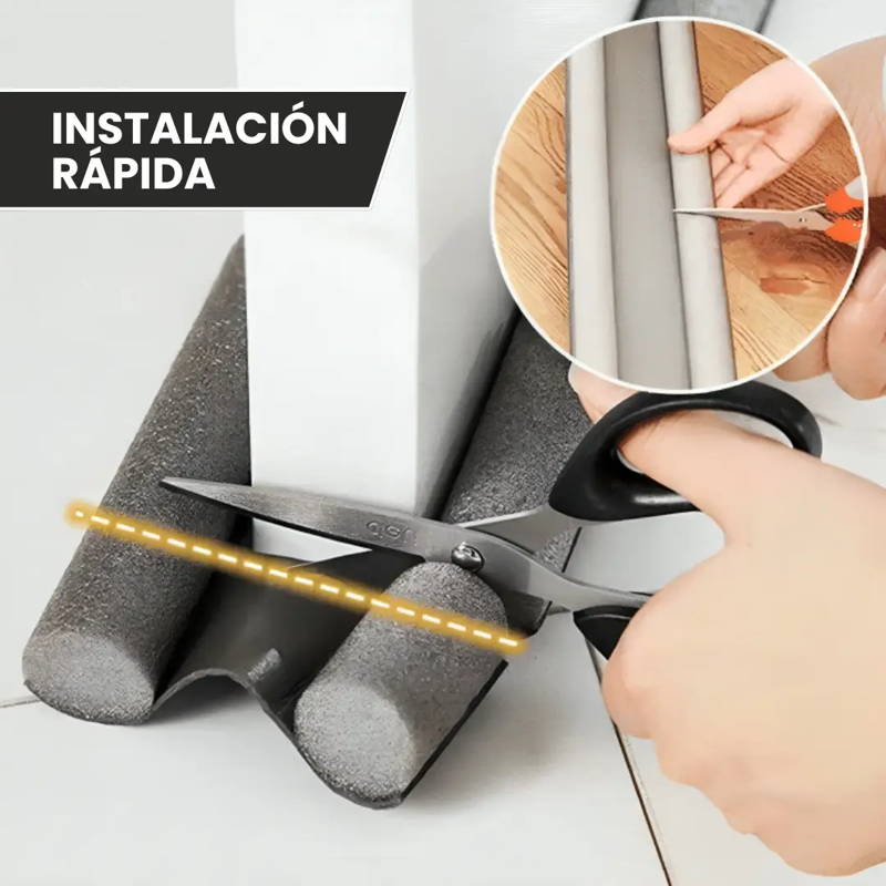 - Su diseño flexible se adapta perfectamente a cualquier tipo de puerta, actuando como una barrera efectiva contra ruidos, viento y pequeños insectos