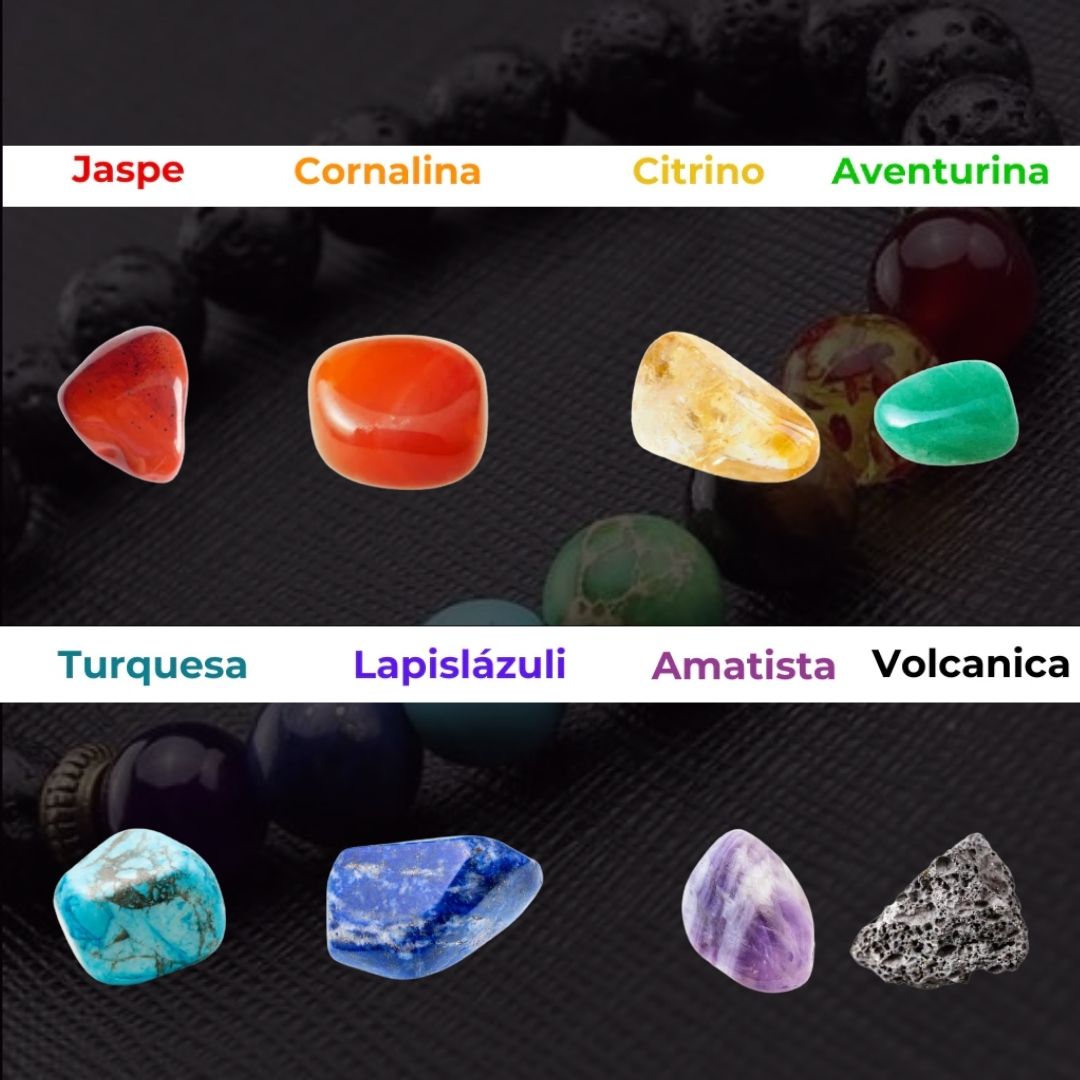 Nuestra pulsera contiene 7 Piedras Naturales, poseen propiedades que generan pequeñas vibraciones las cuales generan una alineación con la mente y el universo
