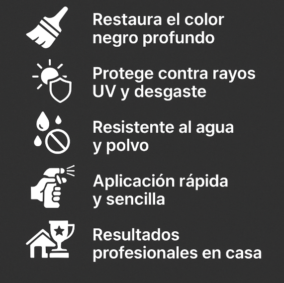 Nuestro RESTAURADOR DE PARTES NEGRAS ofrece una barrera protectora contra los rayos UV y la humedad, asegurando un aspecto renovado y duradero. 🙌🏼😎