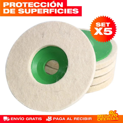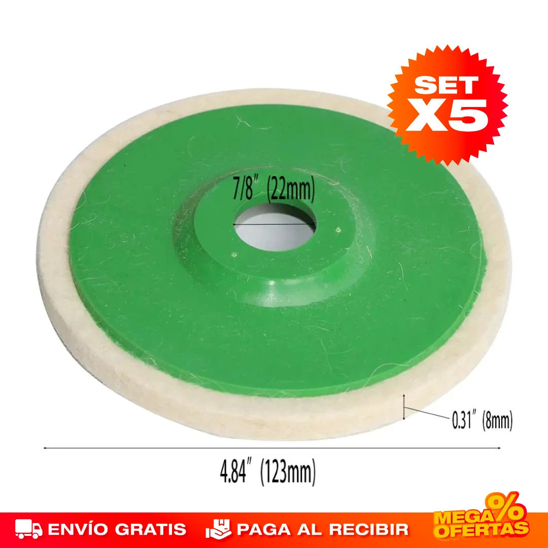 SET DE 5 DISCOS PULIDORES DE LANA Con 60% Descuento🔥
