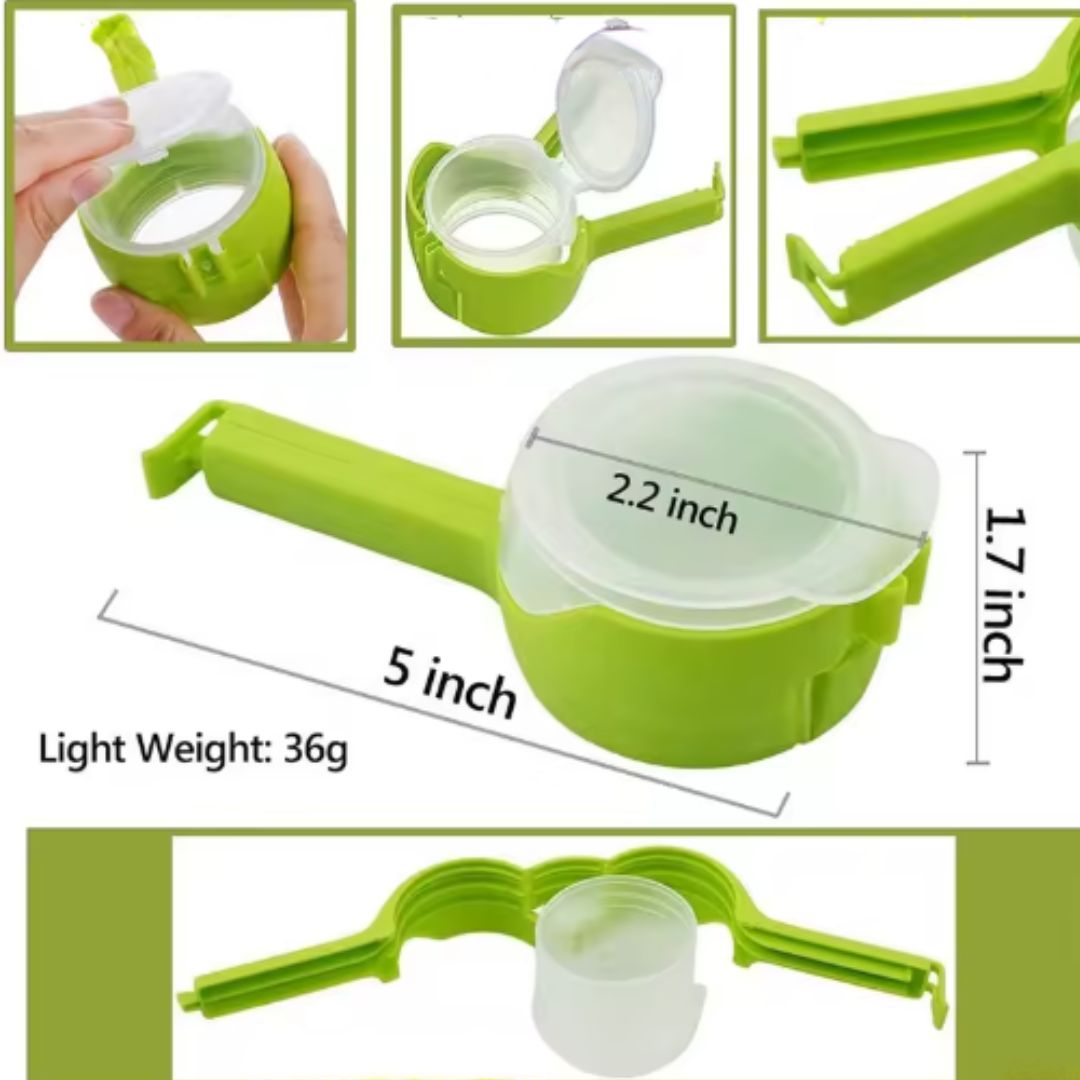 Incluye 4 selladores con tapa en diferentes tamaños, ideales para adaptarse a distintos tipos de bolsas: desde snacks pequeños hasta bolsas de alimentos grandes