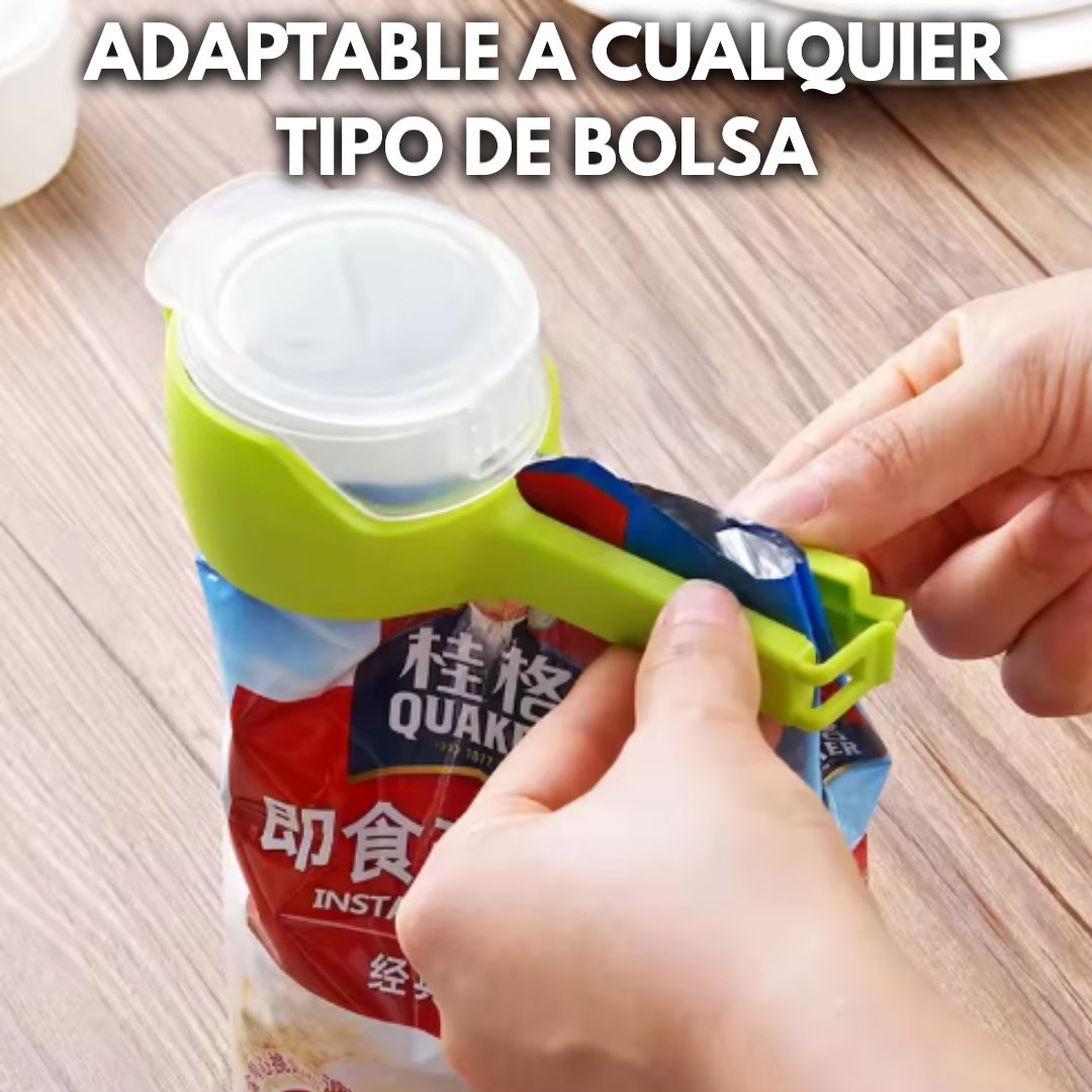 Con un solo clic, sellas cualquier bolsa de alimentos y la mantienes cerrada herméticamente, Gracias a su tapa incorporada, puedes abrir y cerrar cuantas veces quieras ¡sin perder frescura!
