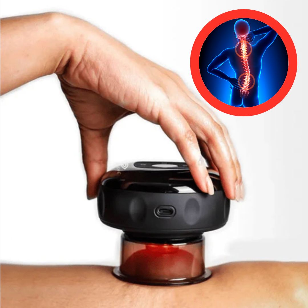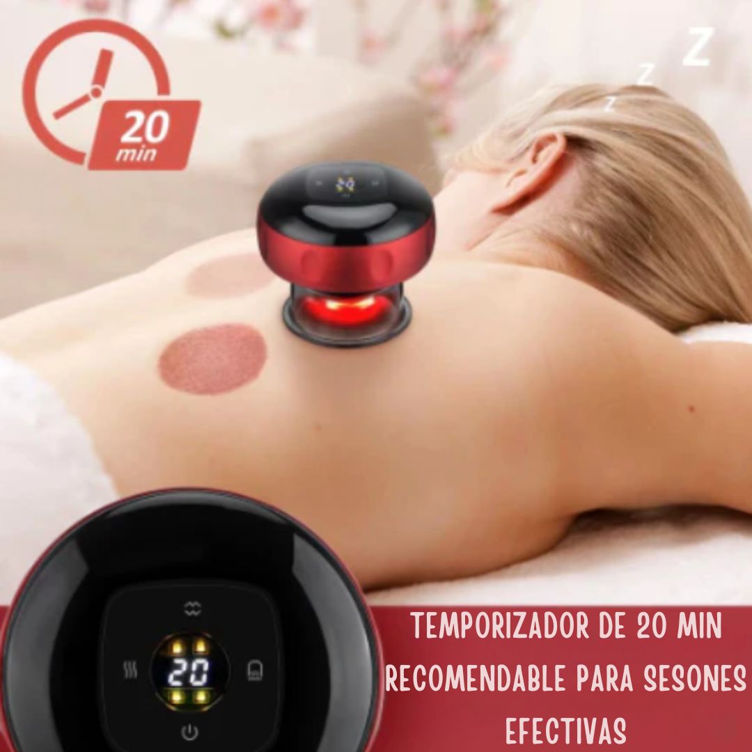 Coloca la ventosa en la zona que deseas tratar (puede ser espalda, cuello, hombros, piernas, etc.)